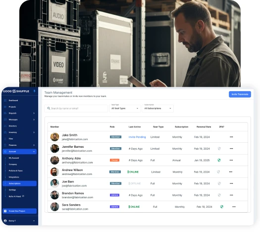 Information in Goodshuffle Pro updates in real-time, so your sales people can focus on client calls and contracts, while your drivers execute pickup schedules and your warehouse crew manages inventory for the next big event.